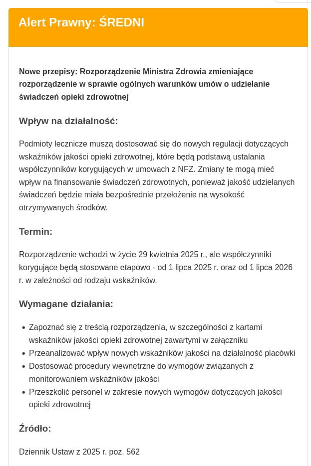✔️ Dane z alertów pochodzą tylko z oficjalnych dzienników urzędowych – jak Rządowe Centrum Legislacyjne, Dziennik Ustaw